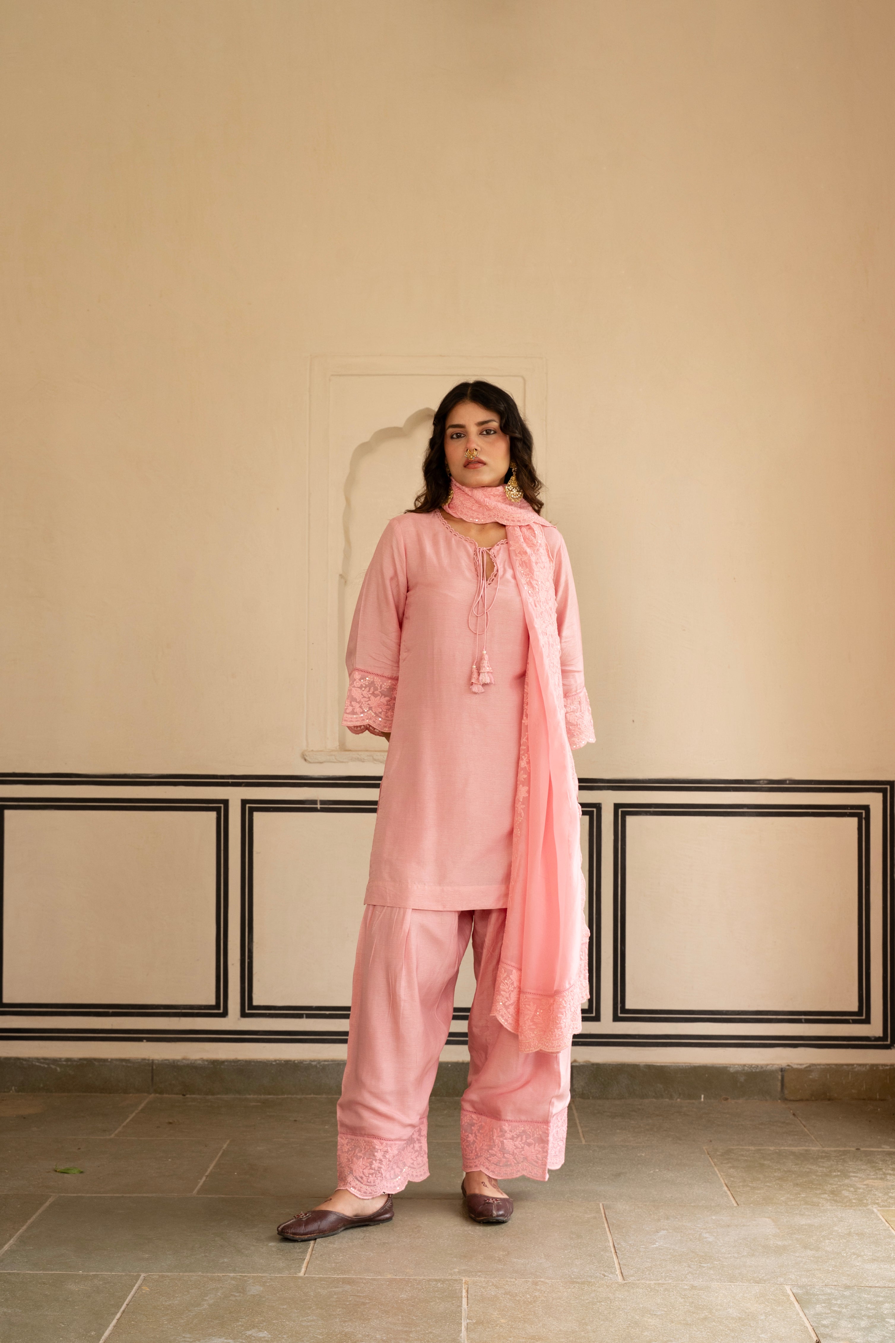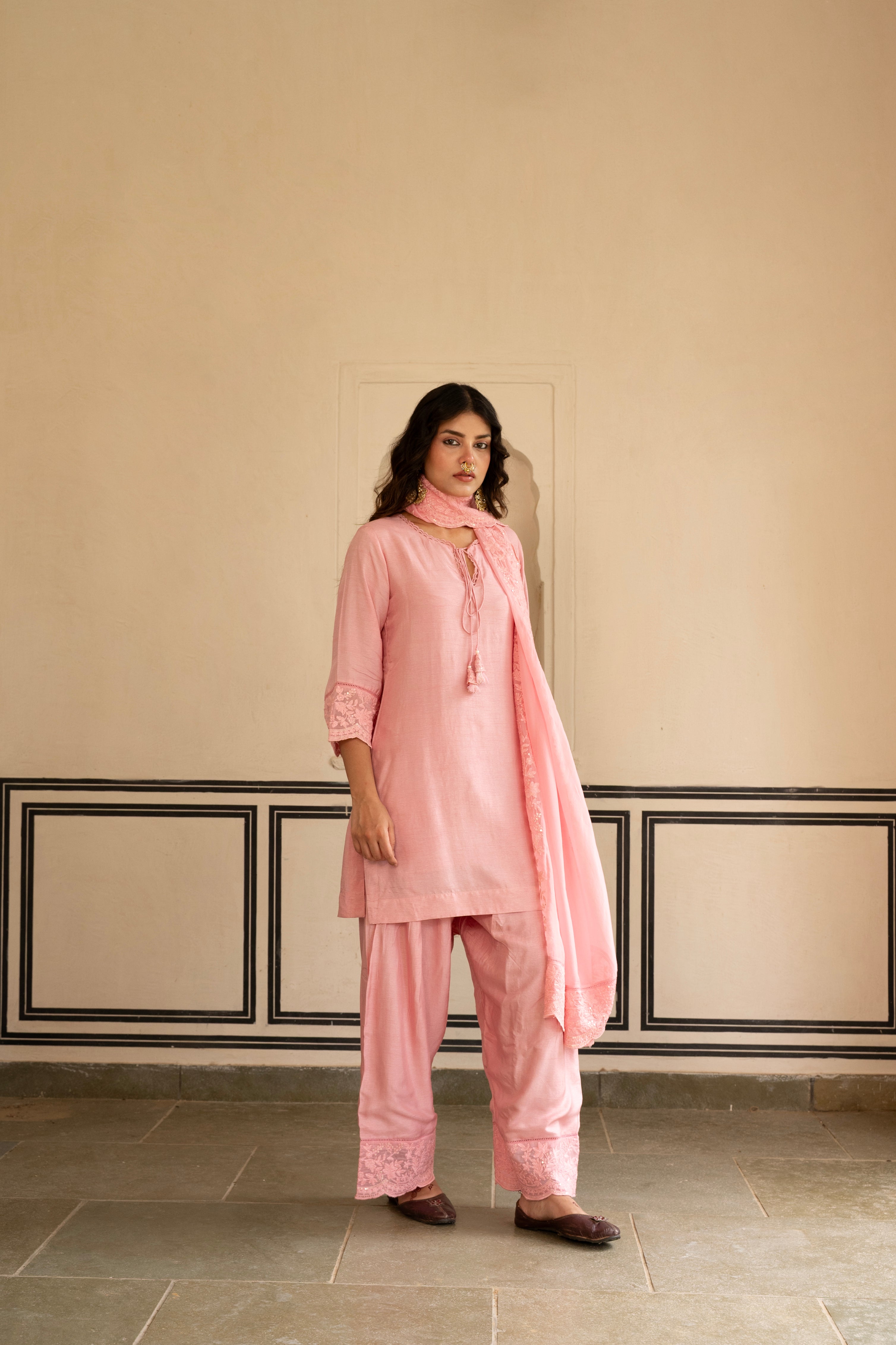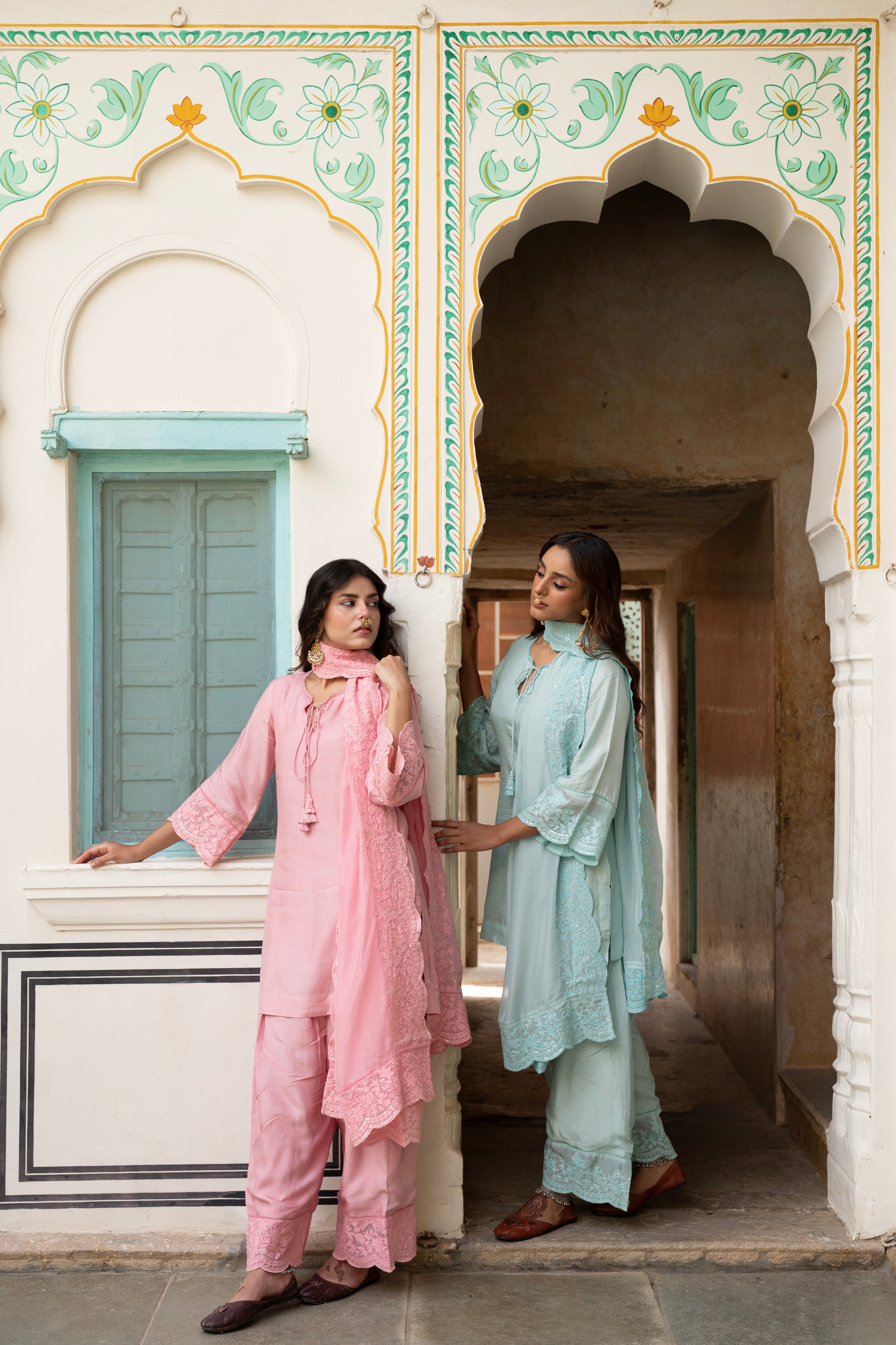 - Fabric—Kurta: Pure Dola Silk, Pant: Pure Dola Silk, Dupatta: Pure Organza