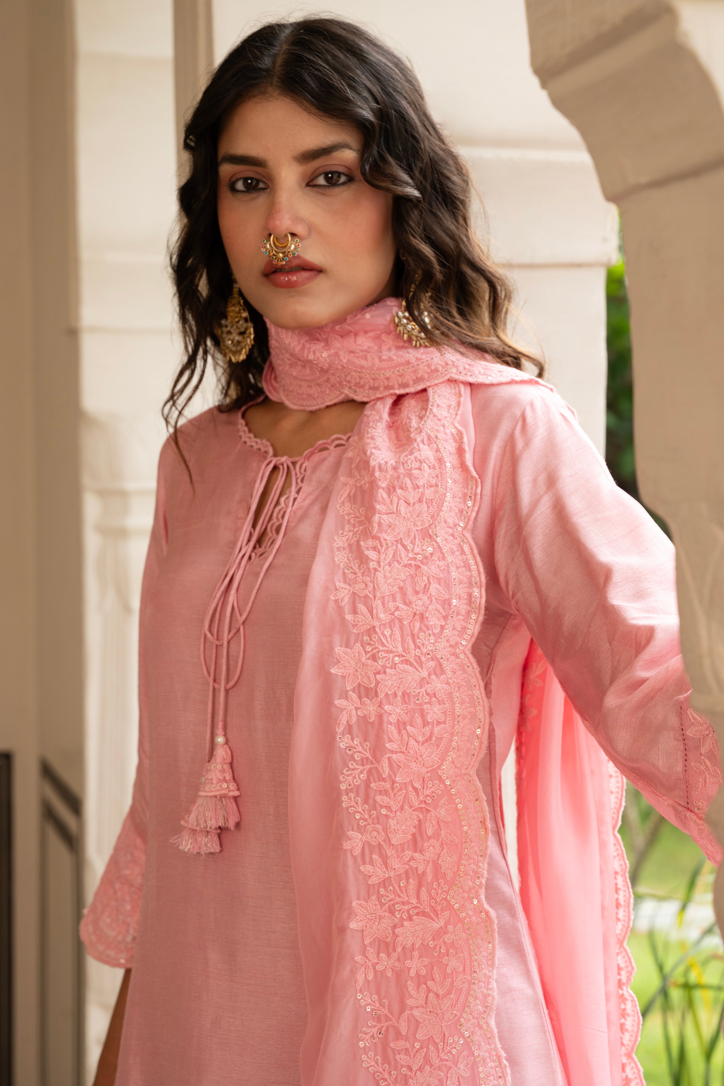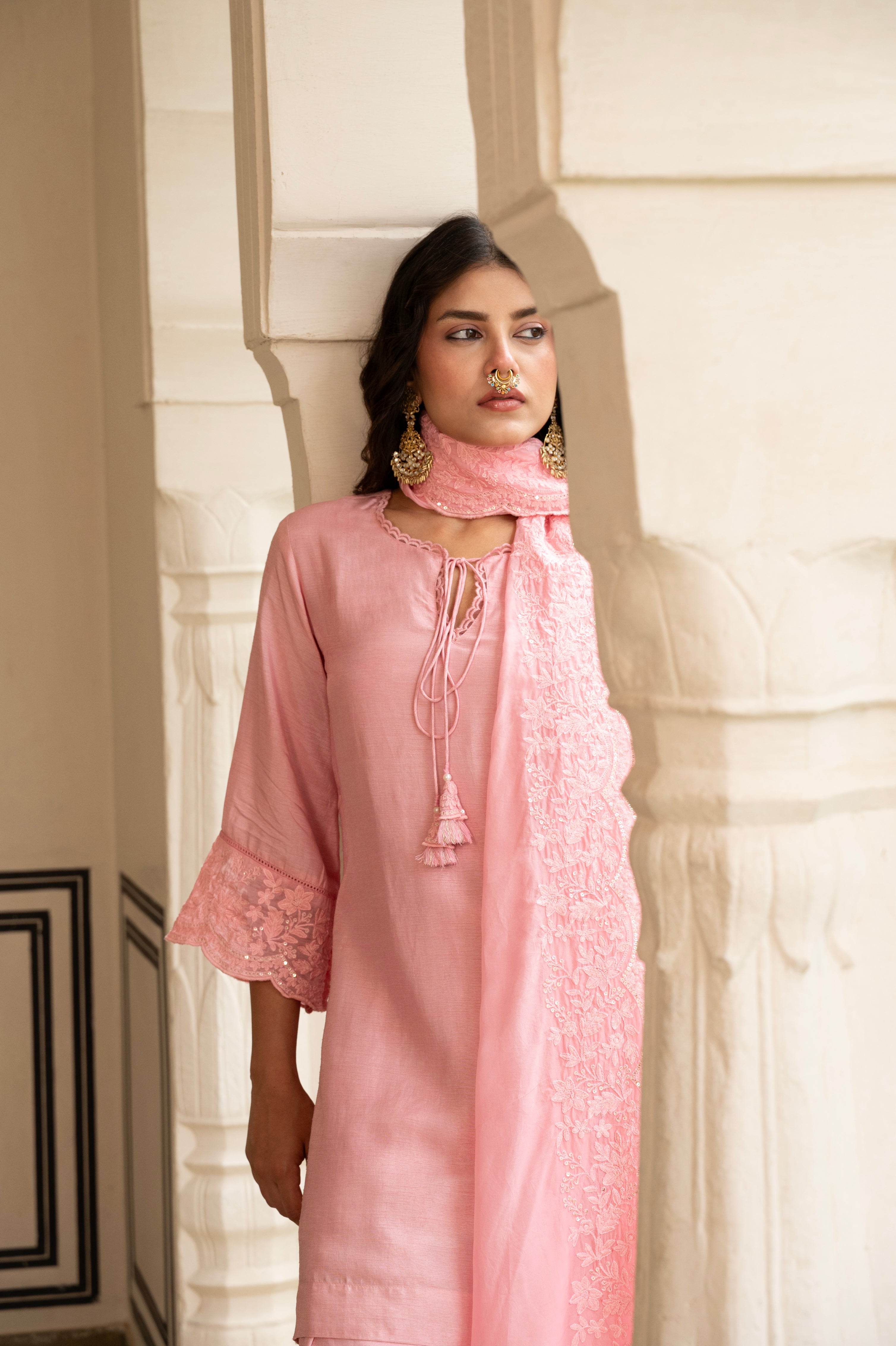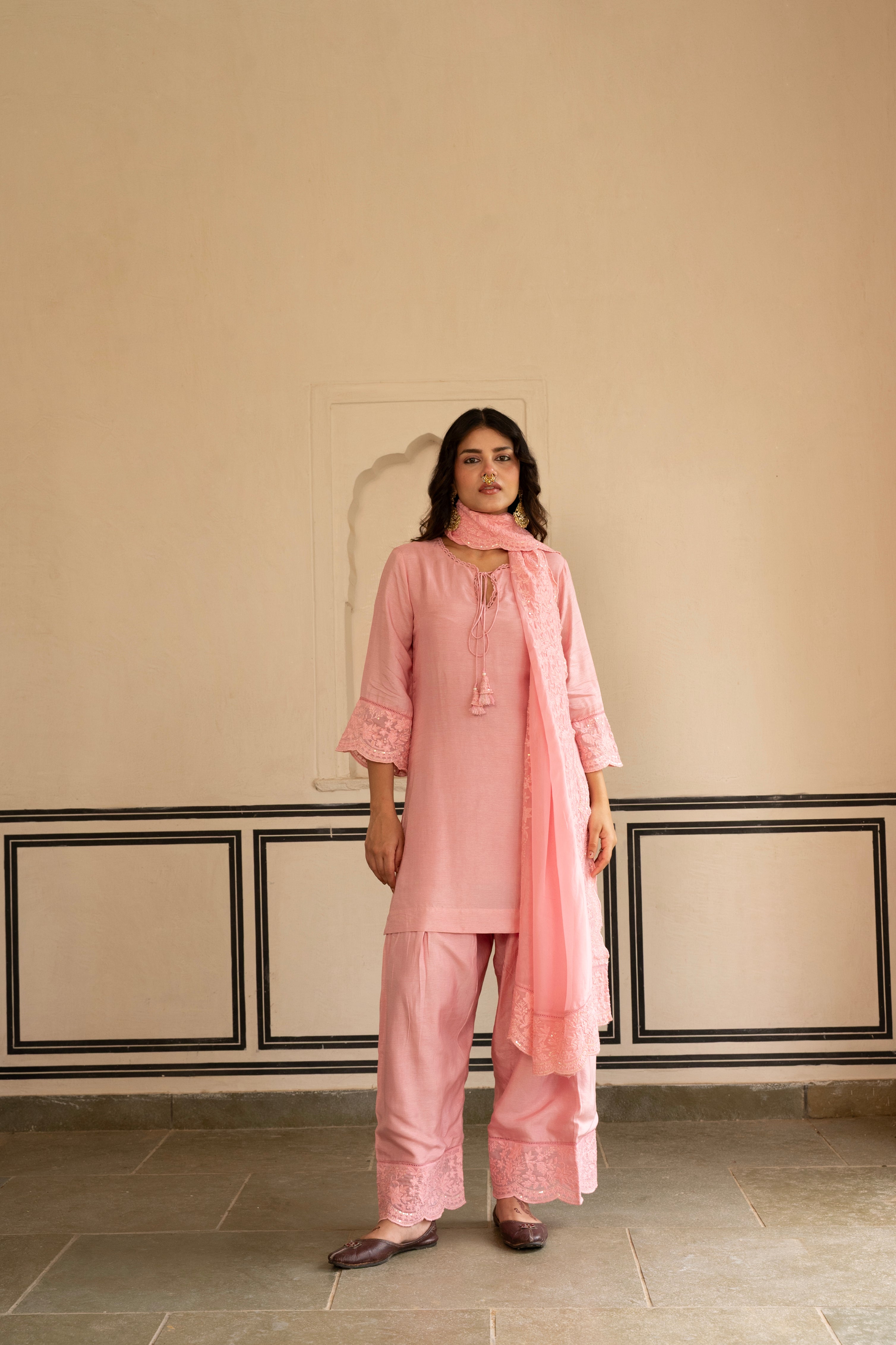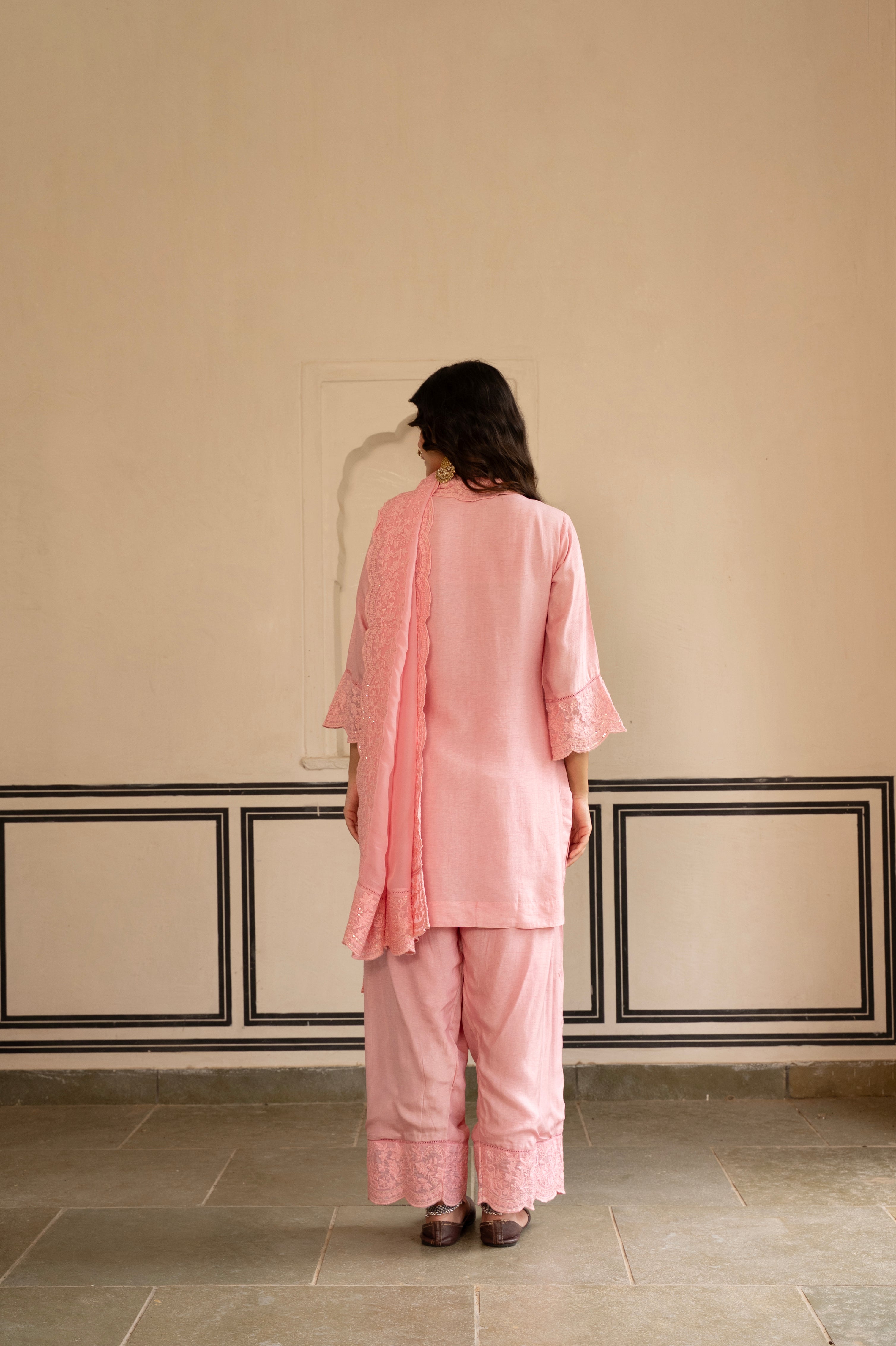- Fabric—Kurta: Pure Dola Silk, Pant: Pure Dola Silk, Dupatta: Pure Organza