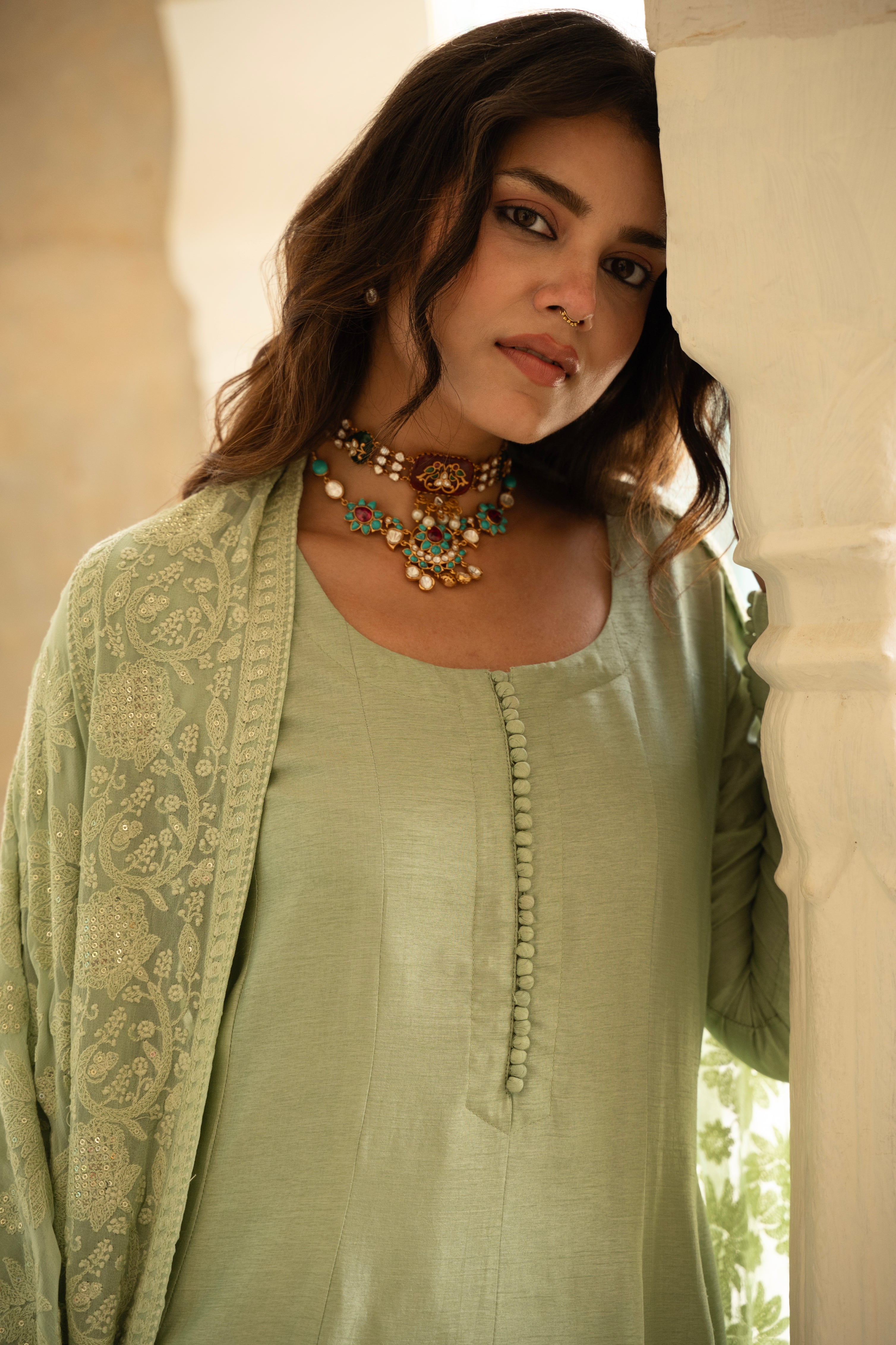 - Fabric—Kurta: Pure Dola Silk, Pant: Shantoon, Dupatta: Pure Georgette