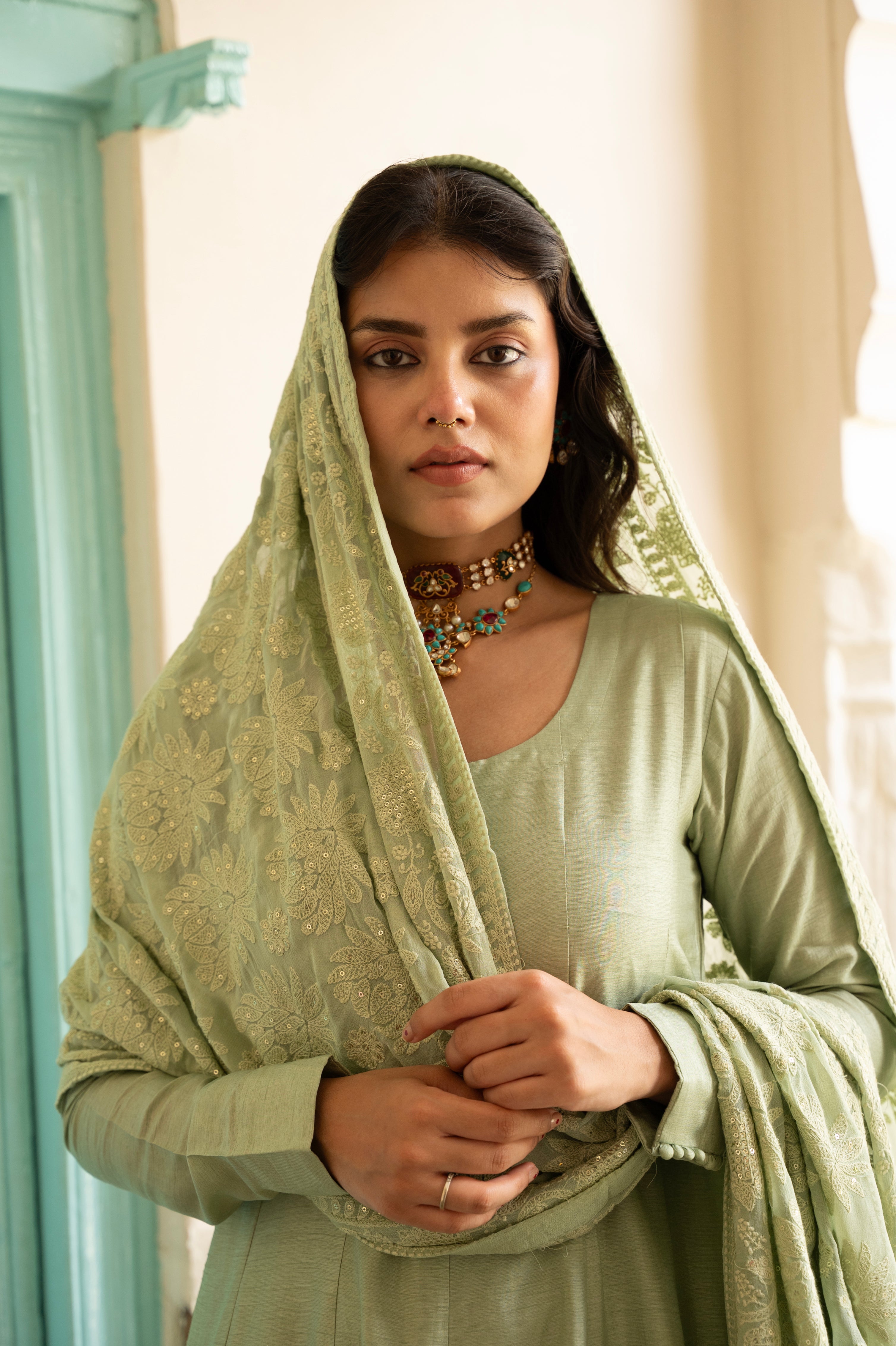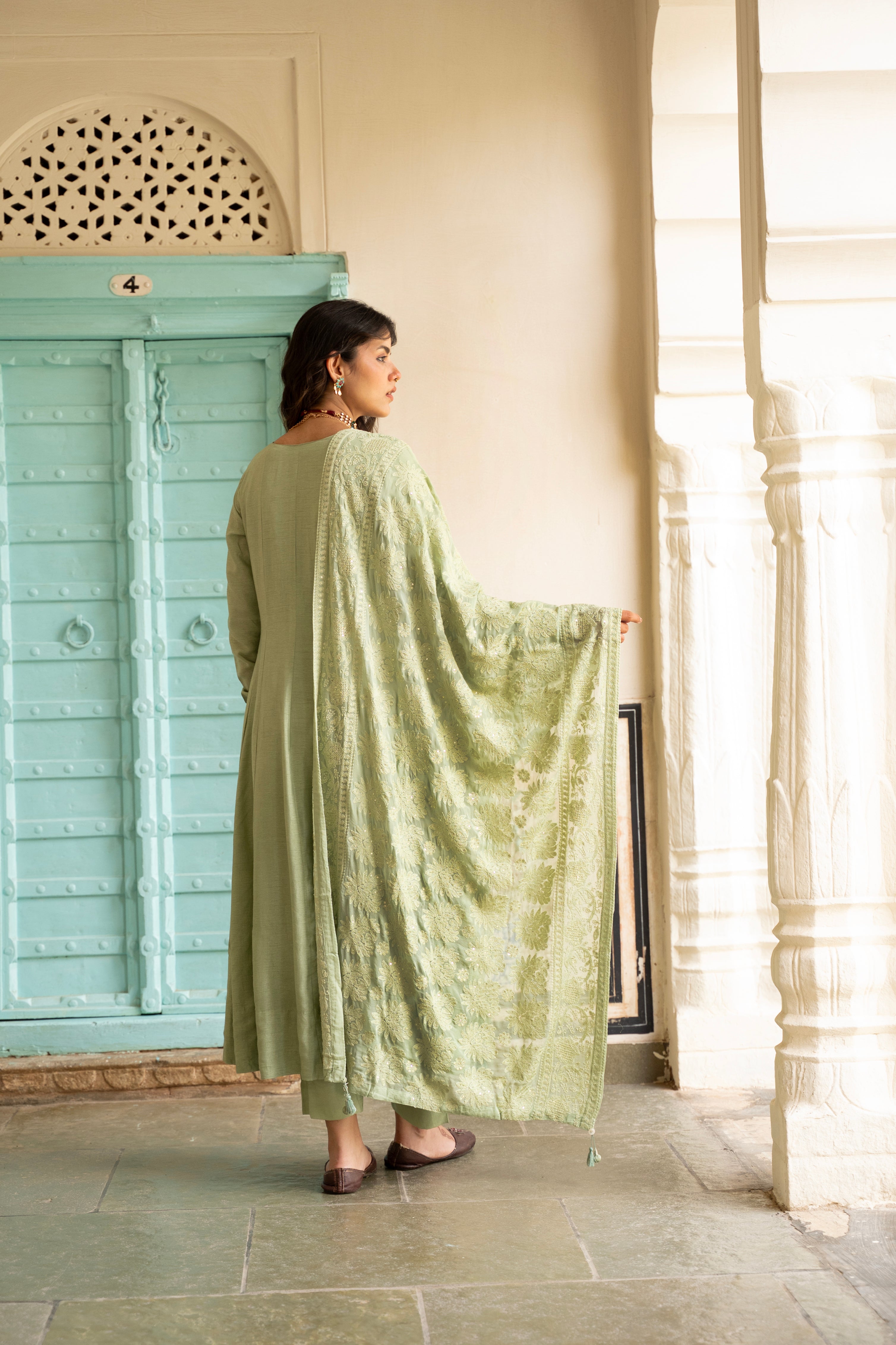 SAGE GREEN PURE DOLA SILK ANARKALI SET