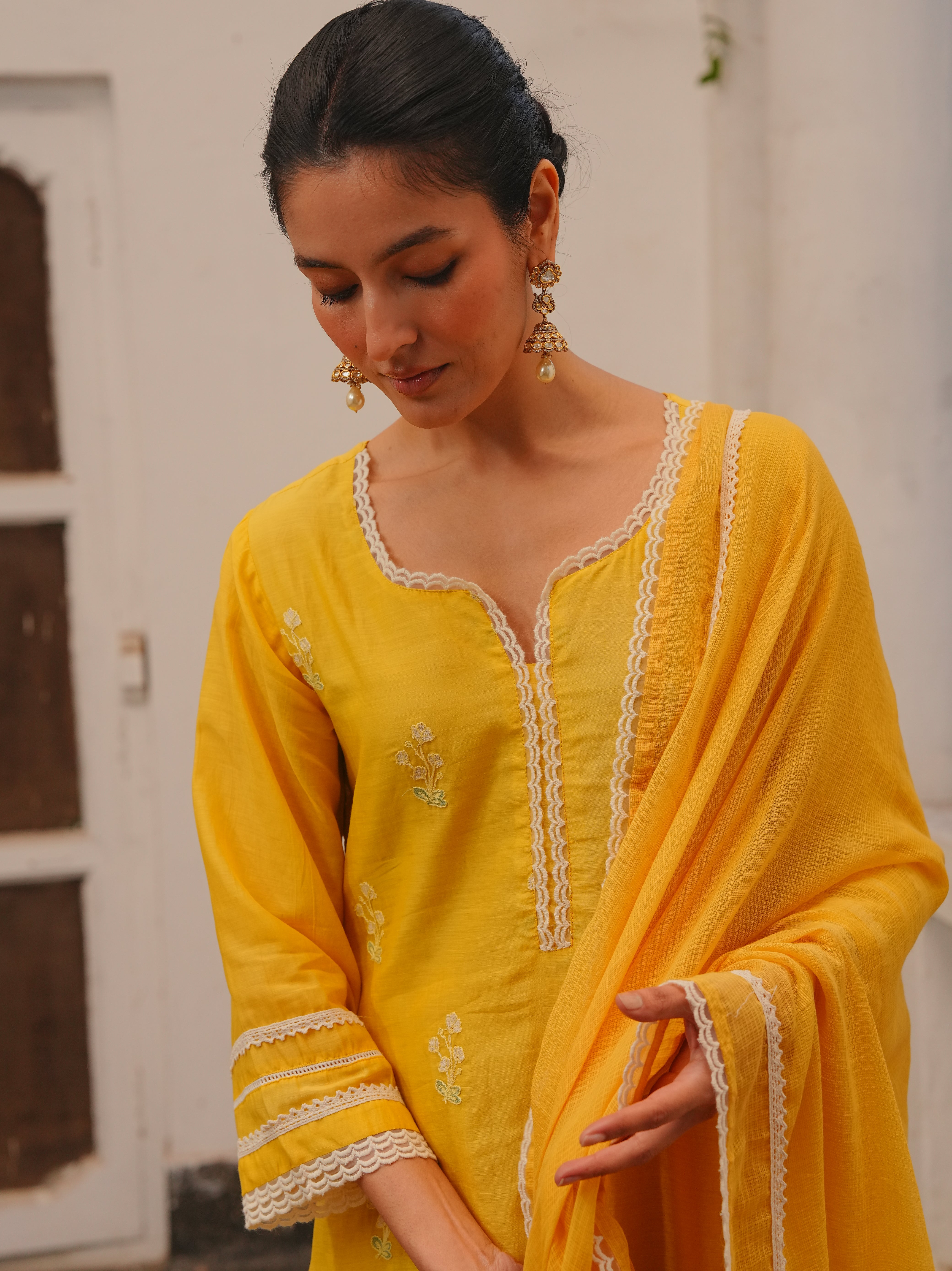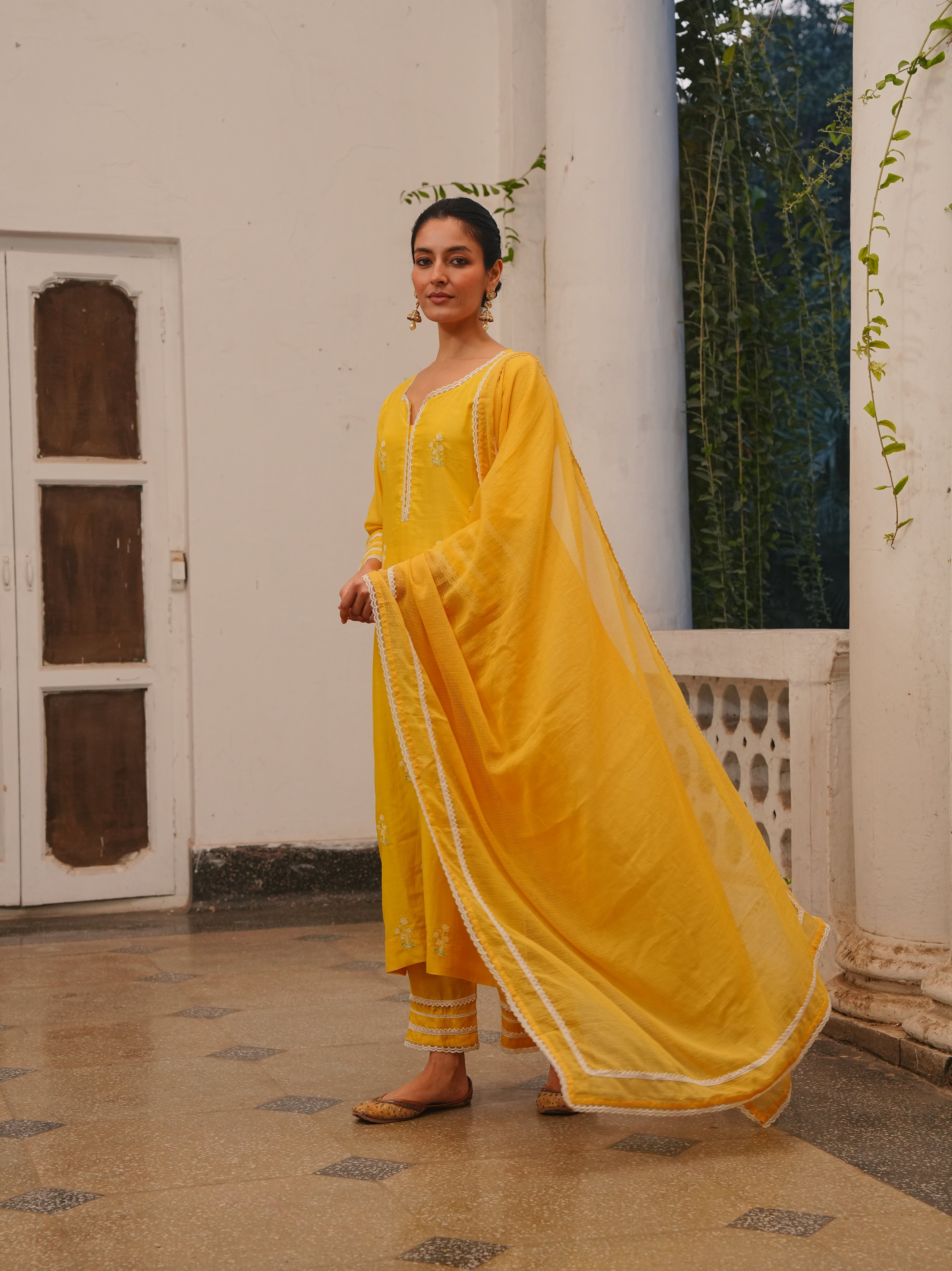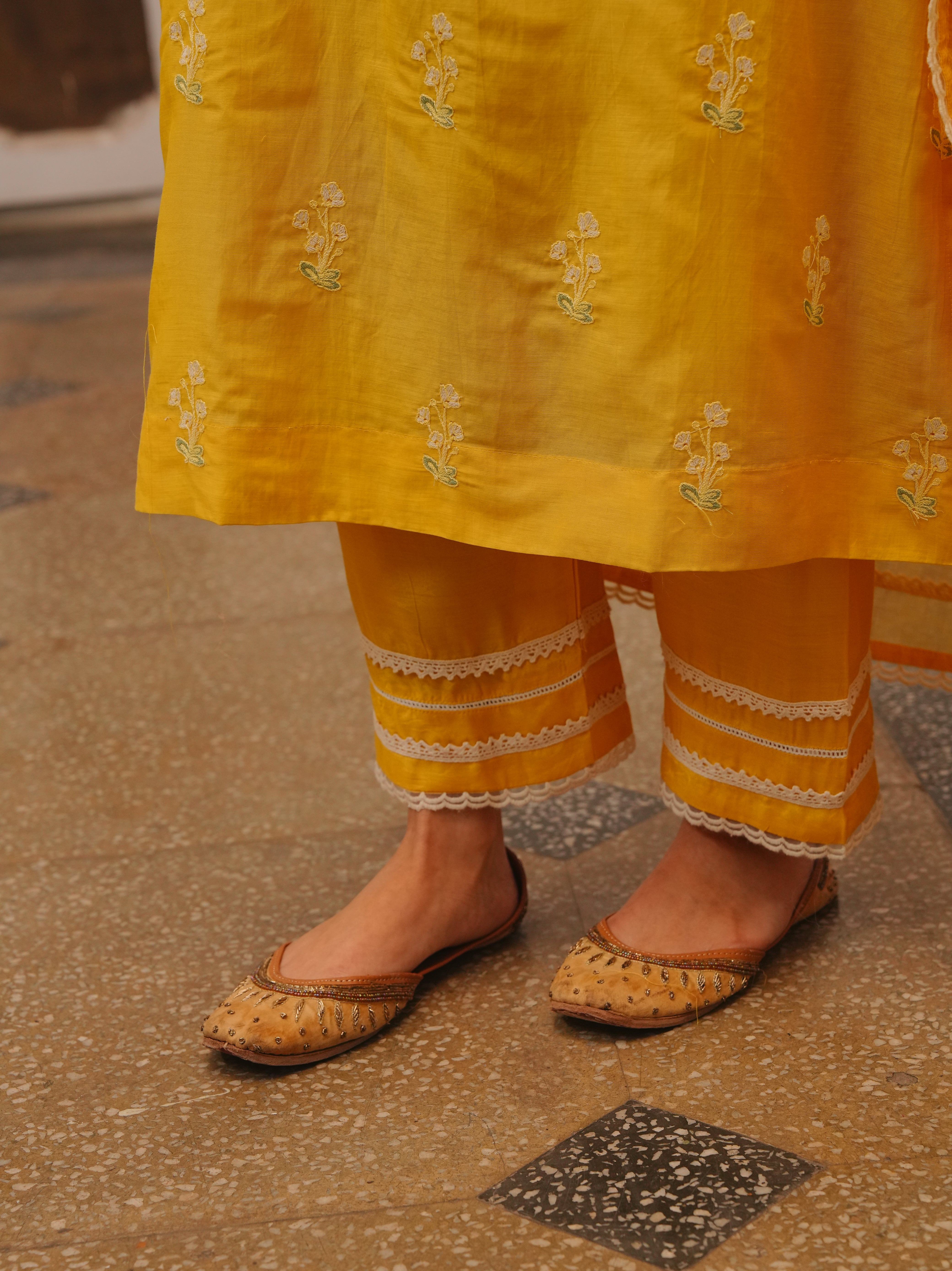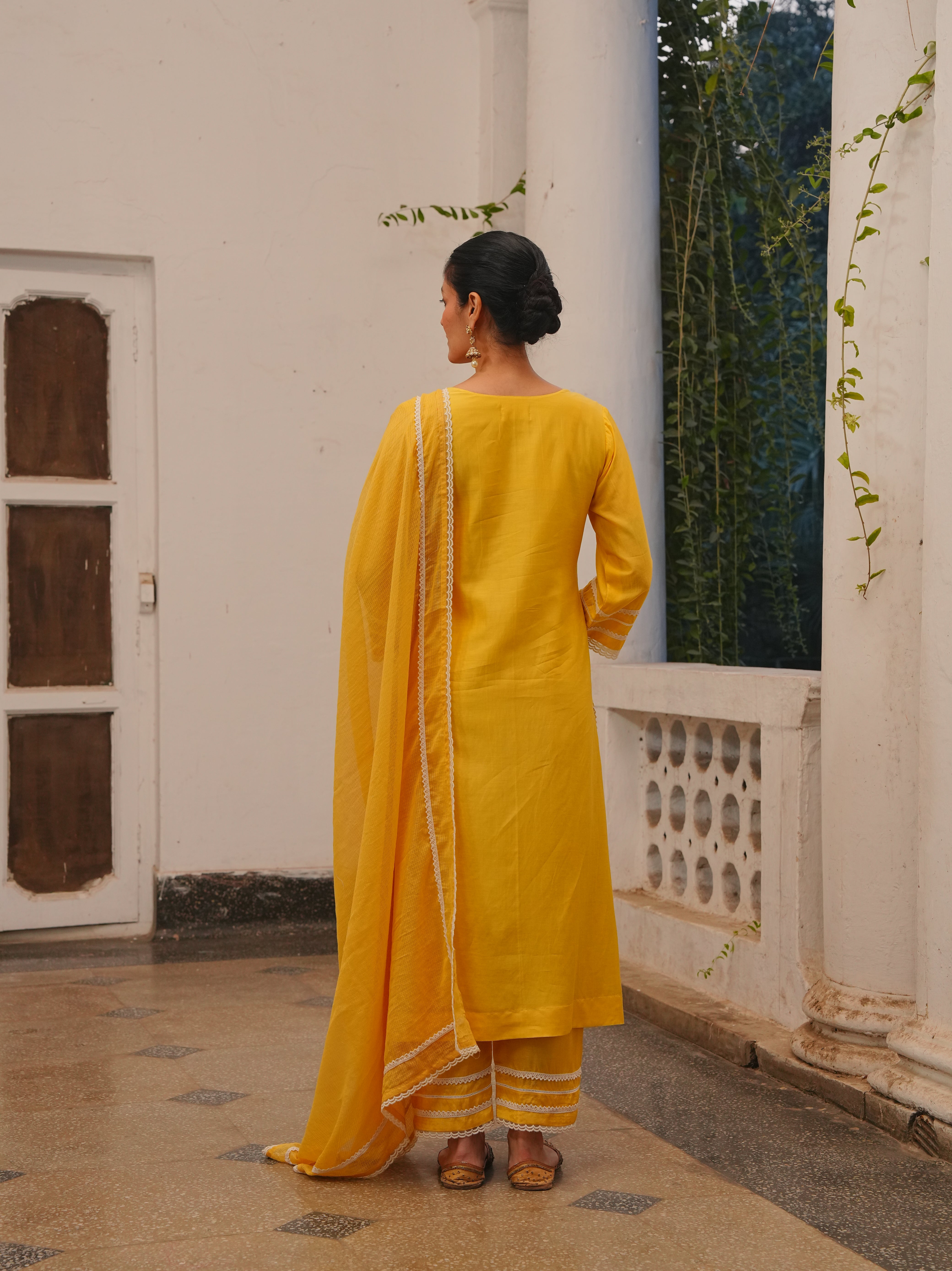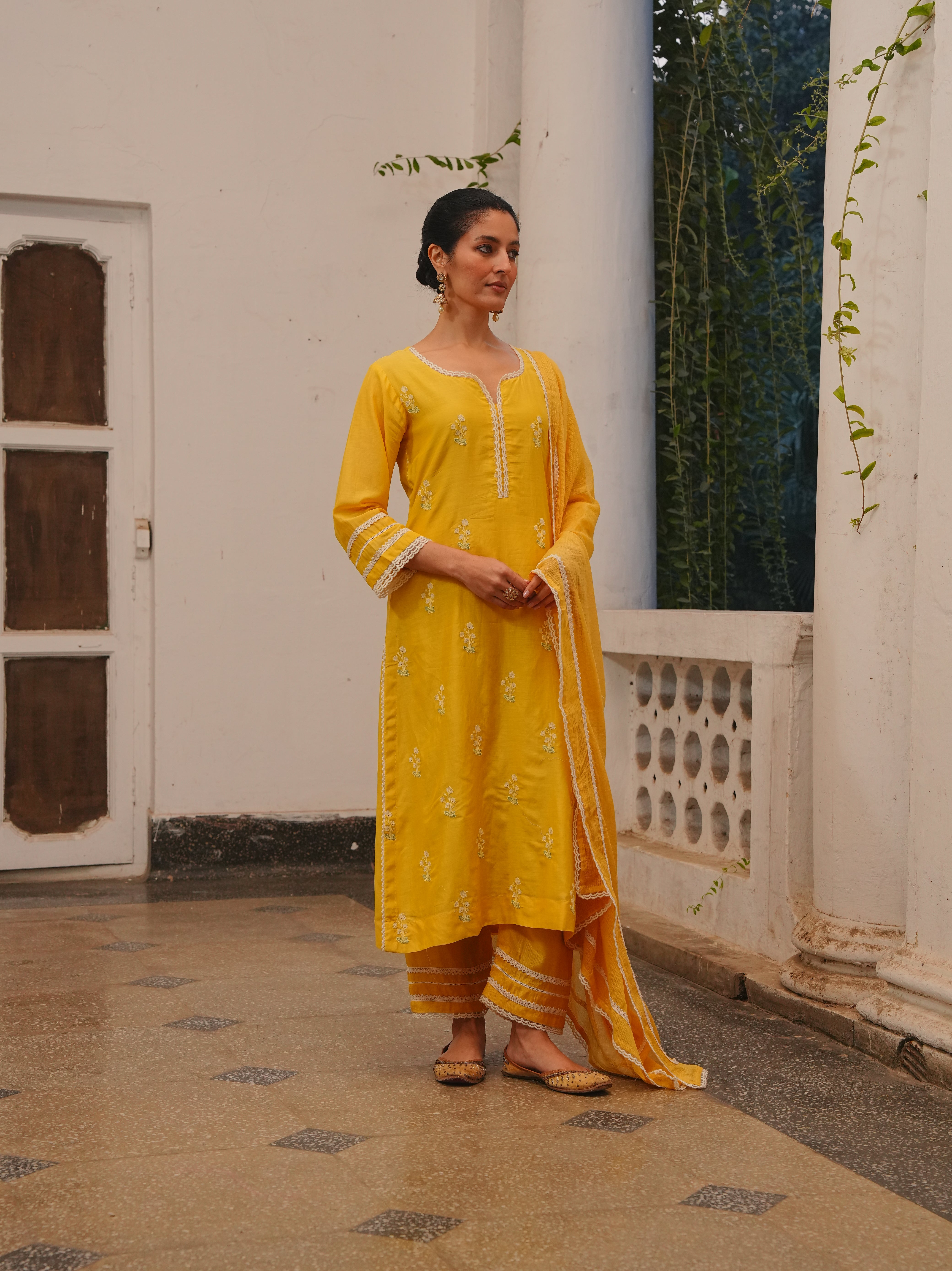 MARIGOLD YELLOW MUL CHANDERI KURTA SET