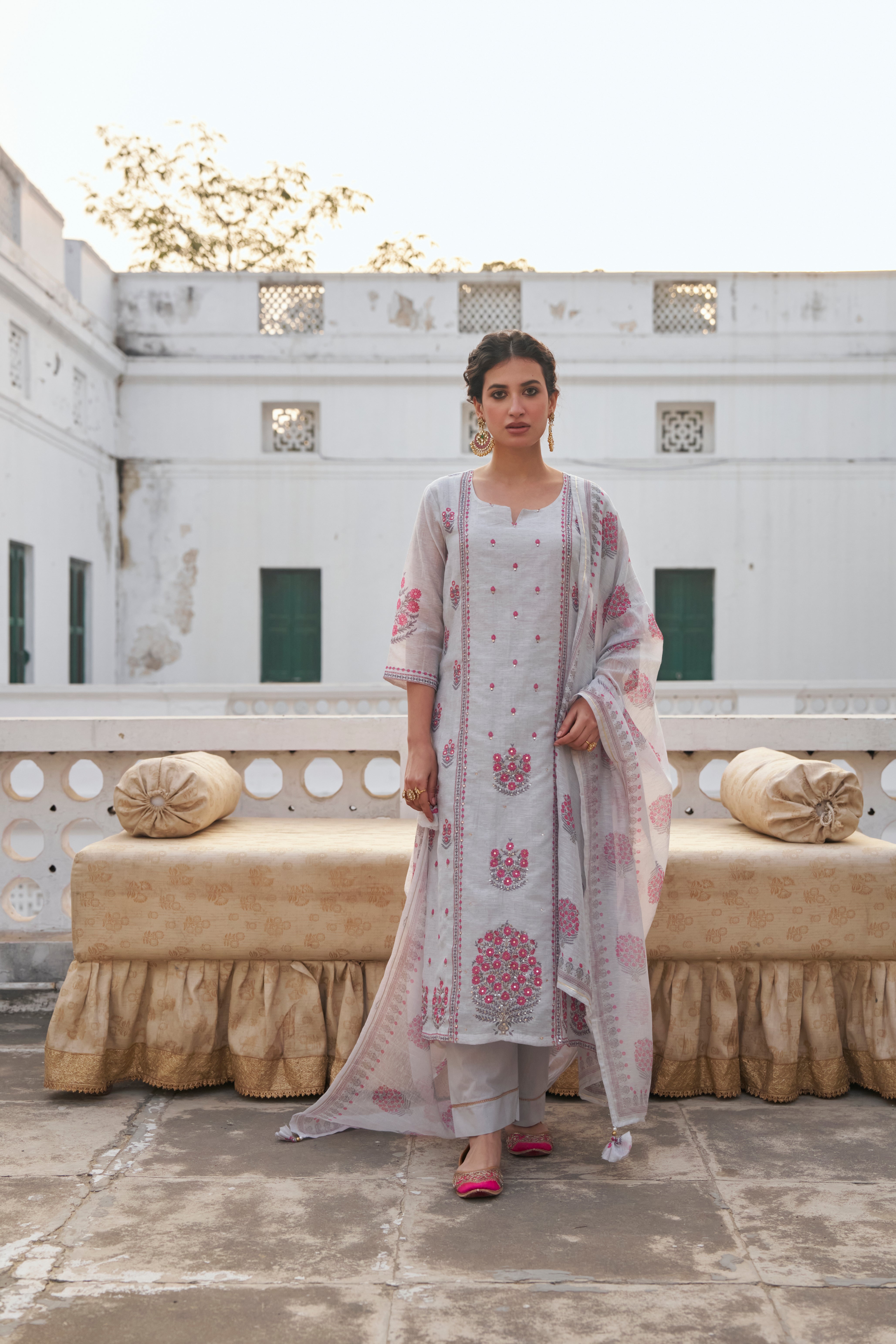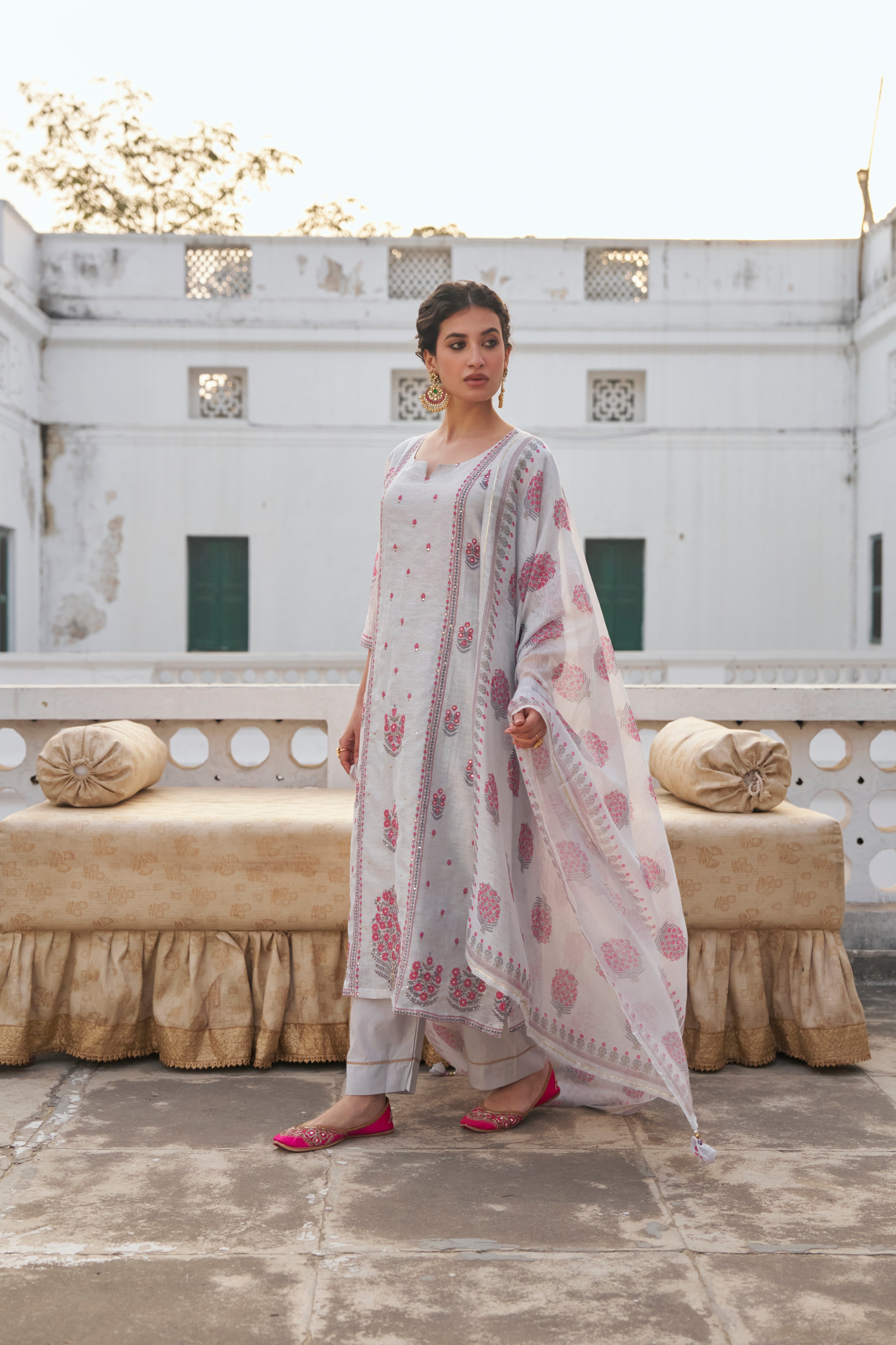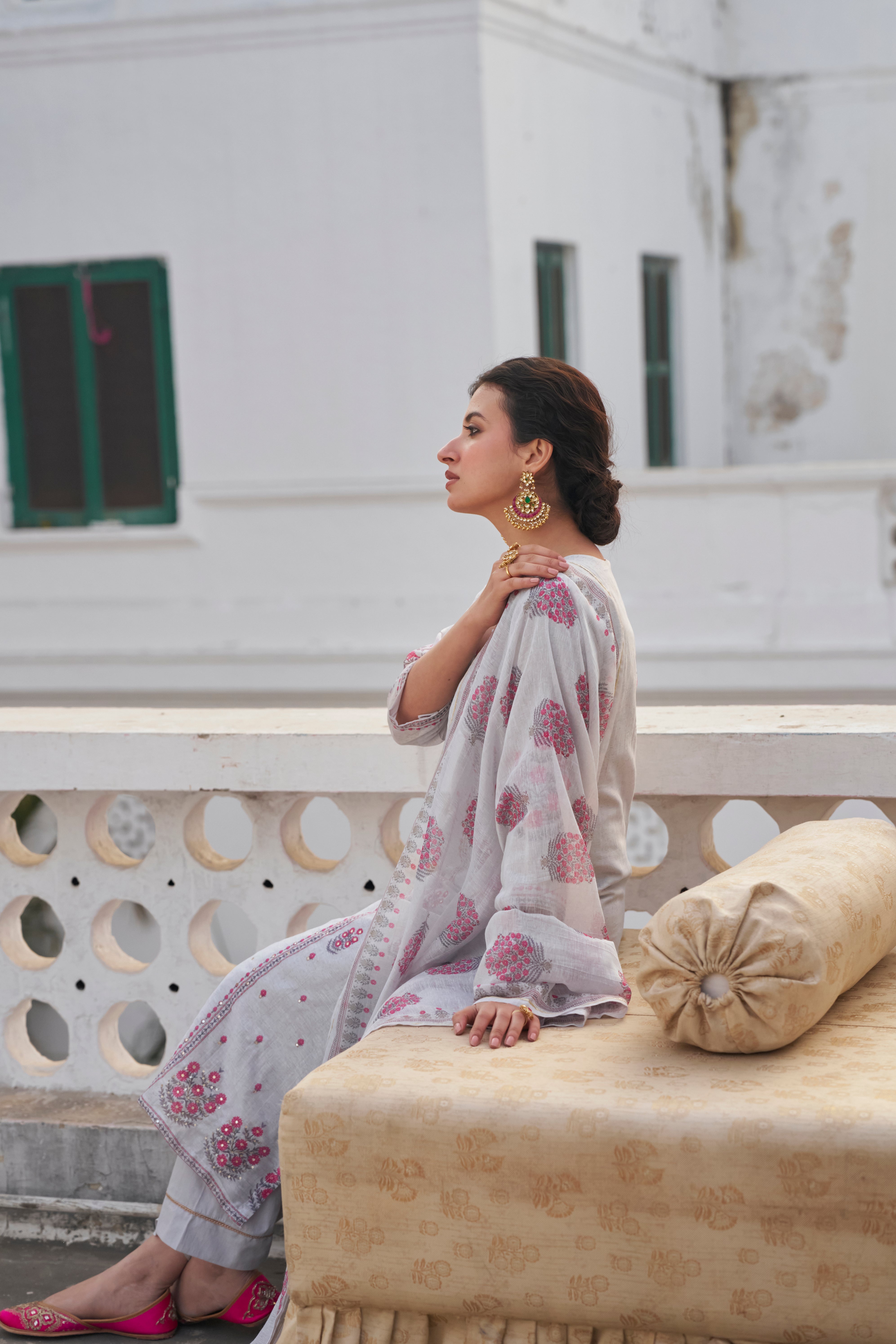 - Fabric—Kurta: Linen, Pant: Cotton, Dupatta: Linen