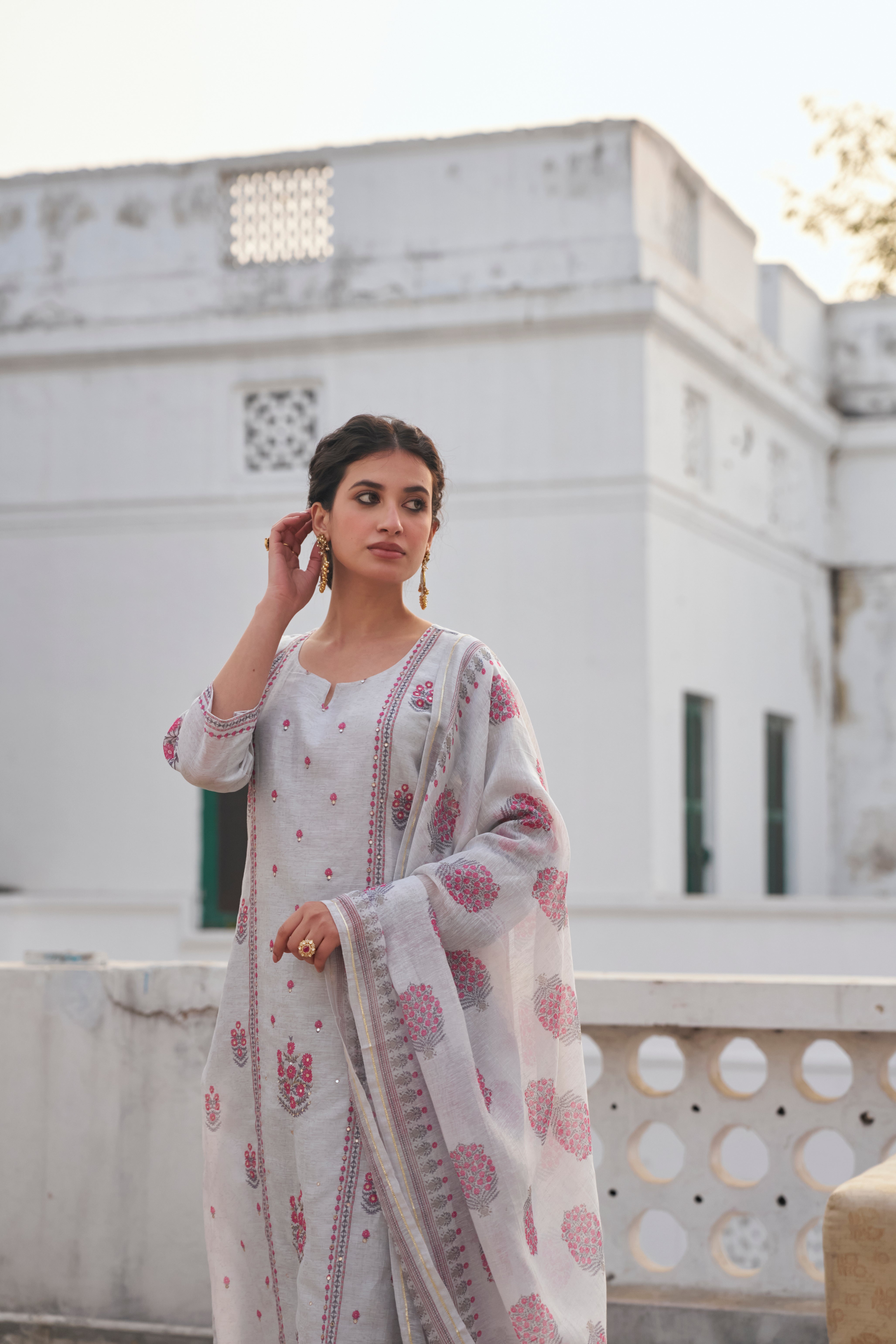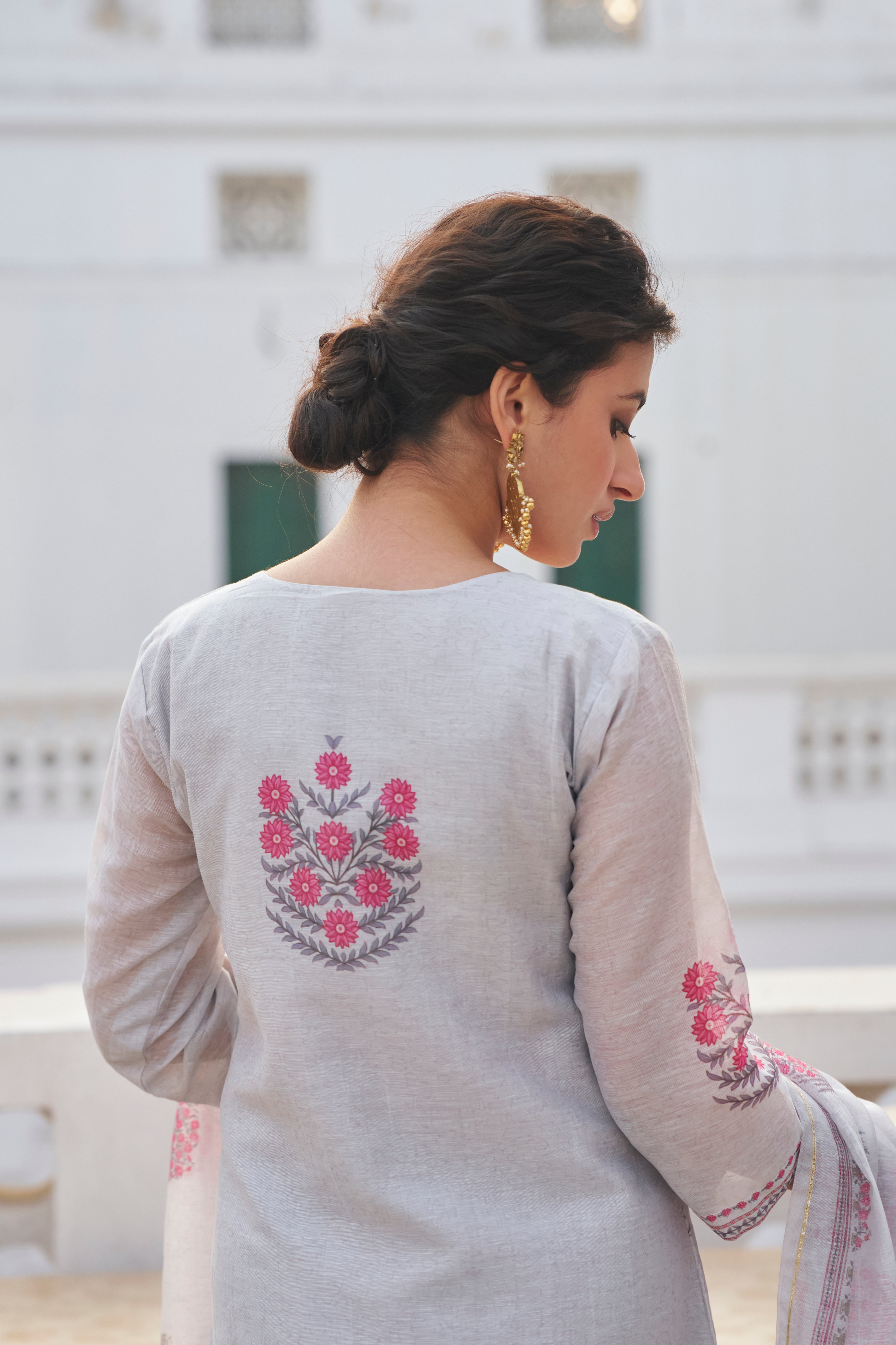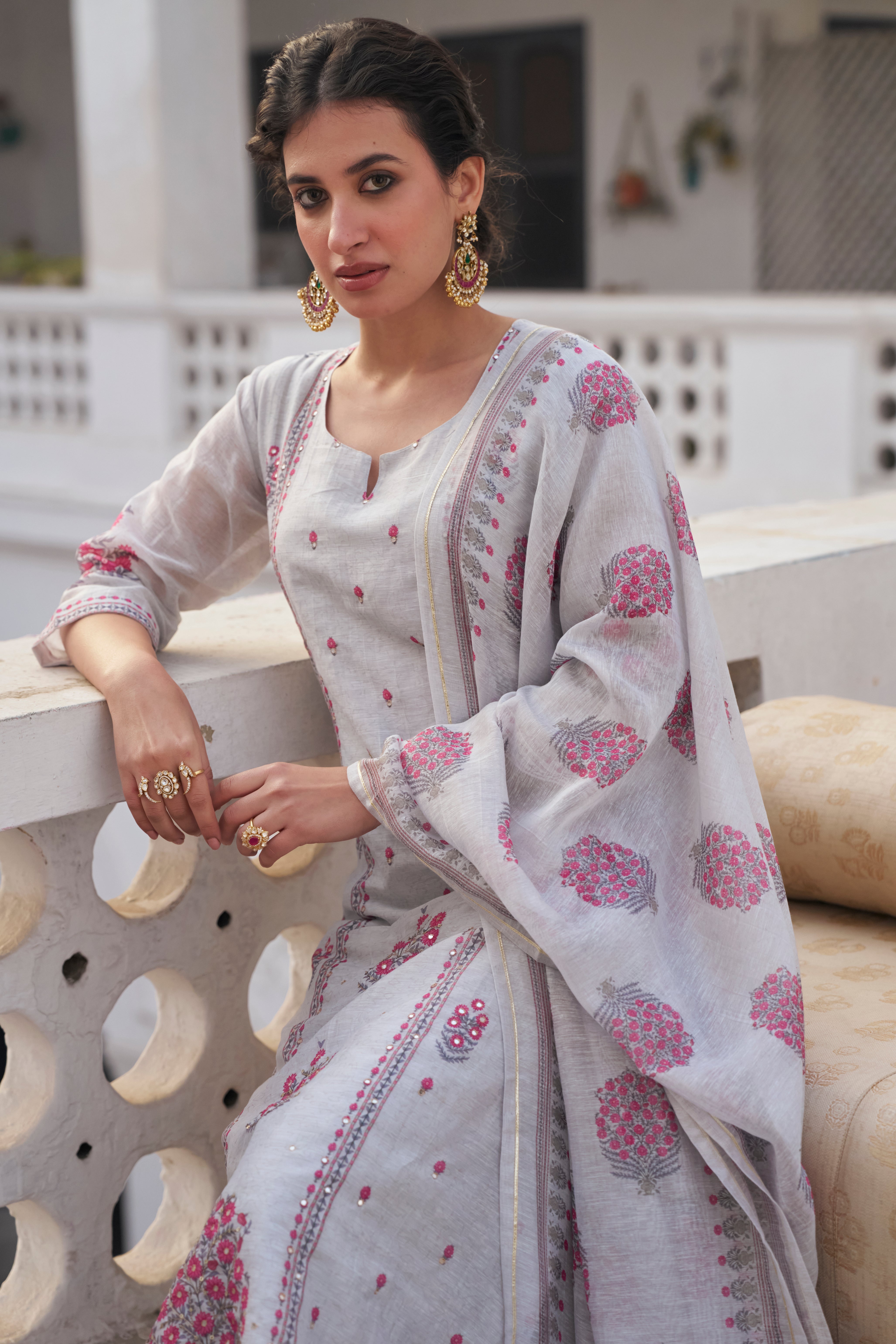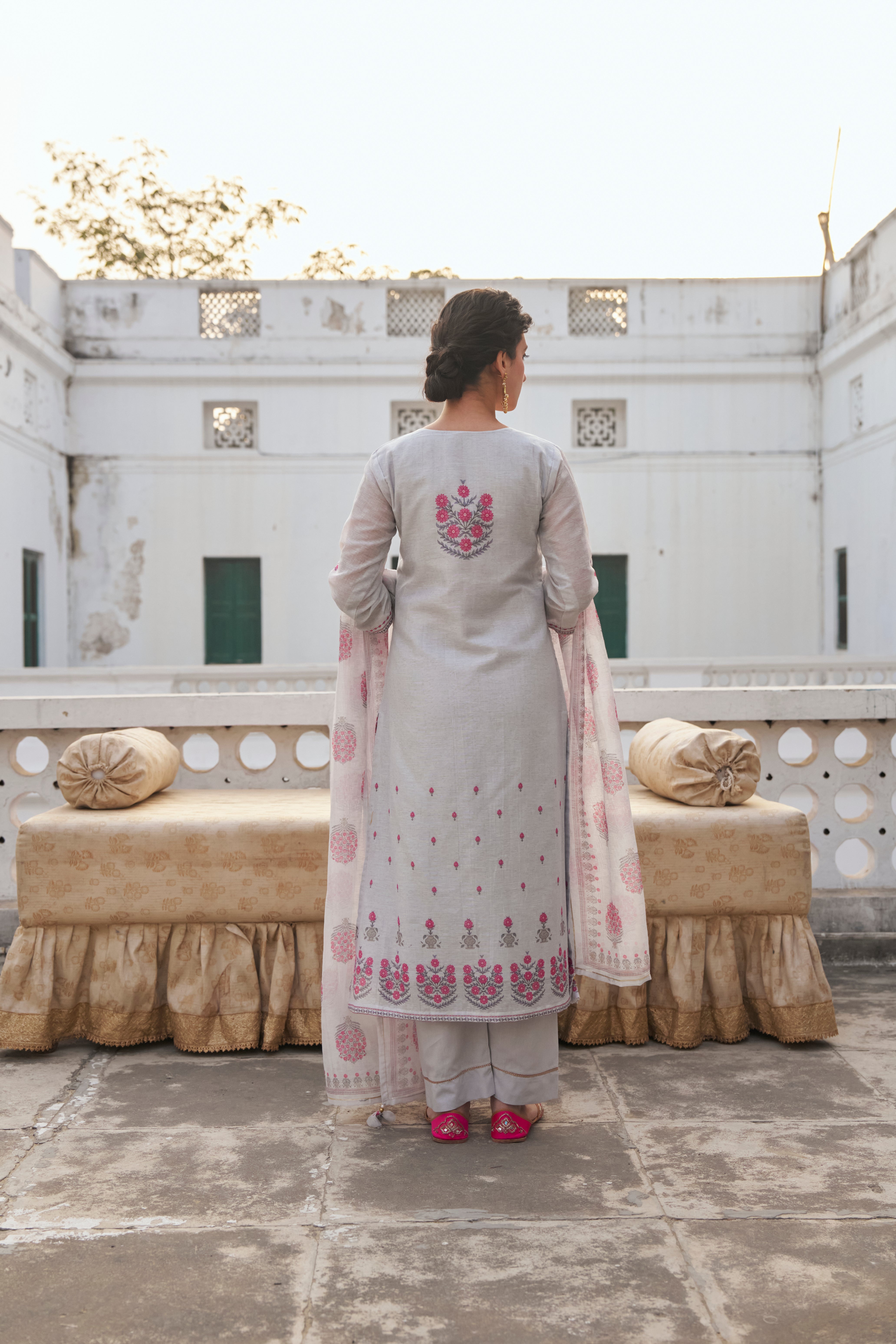 - Fabric—Kurta: Linen, Pant: Cotton, Dupatta: Linen